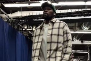 > 迎火箭常规赛首秀&战旧主雷霆!杜兰特格子上衣+鸭舌帽帅气到场!