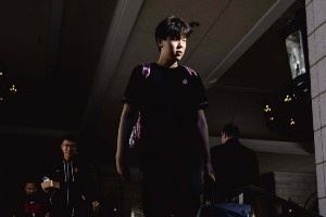 杨瀚森背着粉色小书包 利拉德&阿夫迪亚黑框眼镜 开拓者今日OOTD