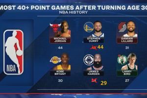 09双雄!30岁后40+次数:库里平乔丹!哈登差科比1场!