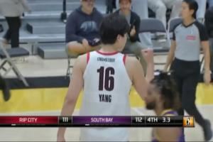 👍信心提升巨大!杨瀚森第二个关键三分轰进激动挥拳庆祝!