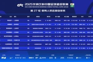 体育资讯10月17日讯 中国足协公布中超第27轮裁判安排,孟祥昆执法浙江vs泰山,麦麦提江执法玉昆vs津门虎。